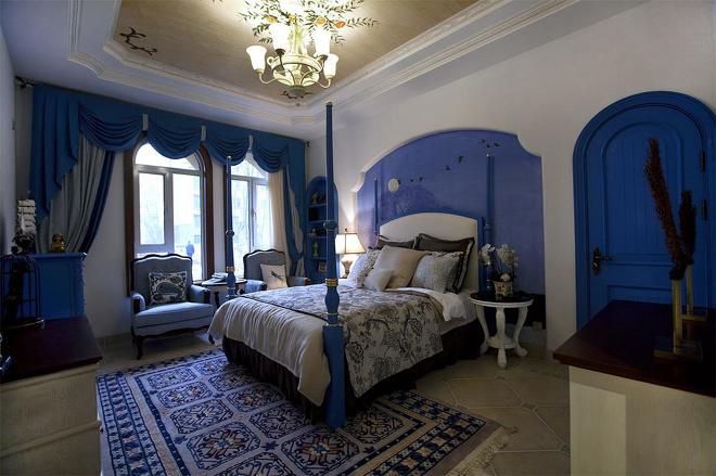 推門而入,普利亞南部薰衣草飄來的藍紫色香氣芬芳馥郁。海與天明亮的色彩干凈清爽,自然清新的玄關,色彩淺淡的地板和淡色的墻壁相呼應。客廳中充斥著拱門和馬蹄狀的造型,家具也以藍色以及木色為主色調,且多是線條簡單修邊渾圓的木質家具。部分家具特意擦淡做舊,表現出自然清新的感覺。