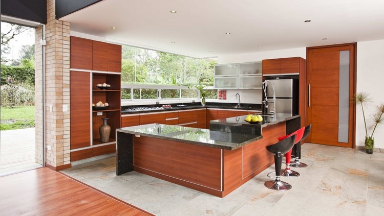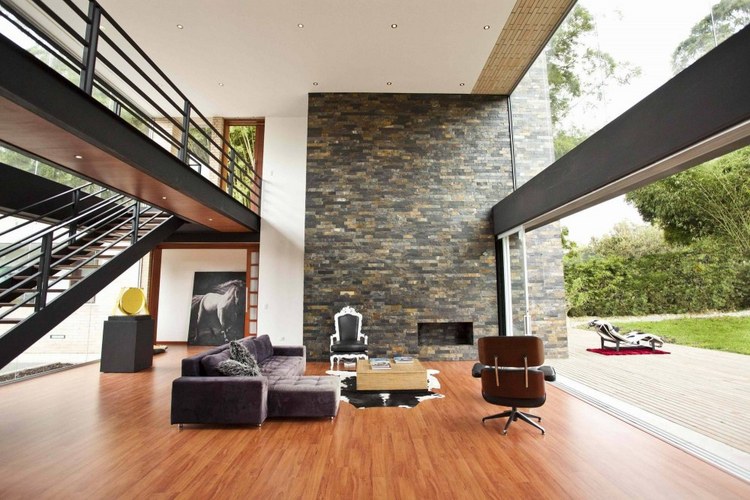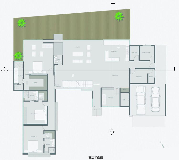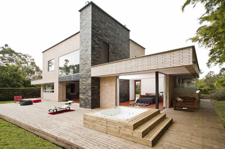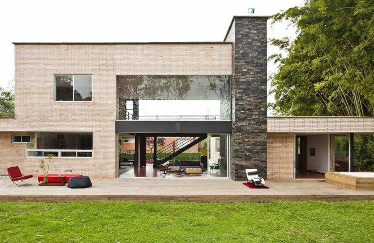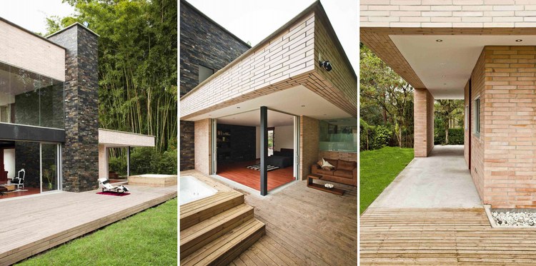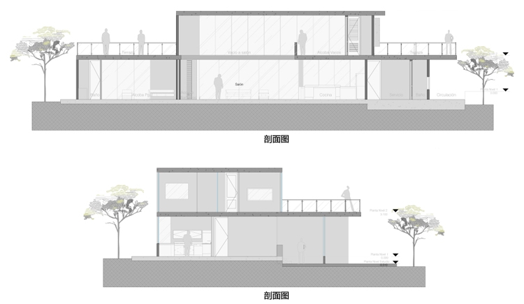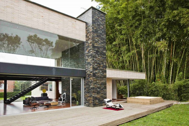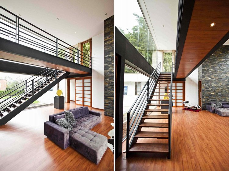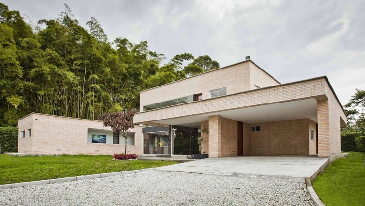 別墅設(shè)計(jì),Olaya別墅(Olaya House)Olaya別墅位于哥倫比亞Medellin市中心大概45分鐘的車程,房屋的首層采用統(tǒng)一樣式的磚塊鋪筑而成,但各功能分區(qū)布局規(guī)整、明確,包括服務(wù)區(qū)、活動(dòng)區(qū)和私人區(qū)。服務(wù)區(qū)域包括車庫、傭人房、洗衣房和貯藏室。活動(dòng)區(qū)內(nèi)設(shè)有一個(gè)巨大的廚房并與用餐區(qū)和主客廳相對(duì),通過一道甲板式通道便可來到院落。私人區(qū)有三個(gè)我是,每一個(gè)房間都帶有獨(dú)立衛(wèi)生間、浴室和更衣室。活動(dòng)區(qū)與私人區(qū)被一道巨大的黑色磚墻所隔開,不論從室內(nèi)還是室外都可以看到這道墻,同時(shí)墻體也是房屋主結(jié)構(gòu)之一,墻體內(nèi)部設(shè)有一個(gè)公共于是和兩個(gè)獨(dú)立的煙囪,分別服務(wù)于主臥和主客廳的通風(fēng)。經(jīng)過位于一層服務(wù)區(qū)的風(fēng)格化樓梯便可以來到二層:這里簡單舒適,分為兩個(gè)寬敞的區(qū)域,一個(gè)是書房一個(gè)是主臥,另外還設(shè)有兩個(gè)巨大的露臺(tái)陽臺(tái),可以從這里欣賞外面的風(fēng)景。值得一提的是,露臺(tái)與房屋由一座小橋連接。