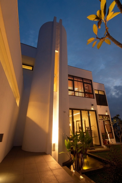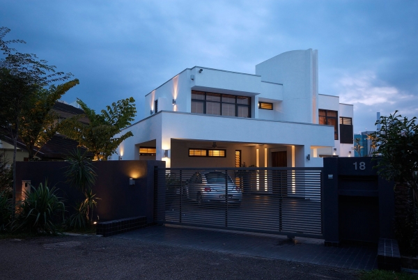 這個4500平方英尺的房子建在8000平方英尺的一個緩坡上降落。房子的方向是特殊的,因為它并不能面對服務道路,但有一個45度的傾斜。它能達到兩個目標:第一,寬度和建筑物的大小是優(yōu)化;其次,它確保隱私的人。建筑結(jié)構(gòu)保存雖然增加了一些微小的擴展。這房子被漆成白色,這樣一個能欣賞強壯的架構(gòu)形式。黑暗的鋁框玻璃窗被安裝在眾議院。以補充現(xiàn)代形式、景觀建筑都保持清潔。蓄意使用戲劇性的Serralunga盆與Zamia紙板棕櫚成為焦點的花園。